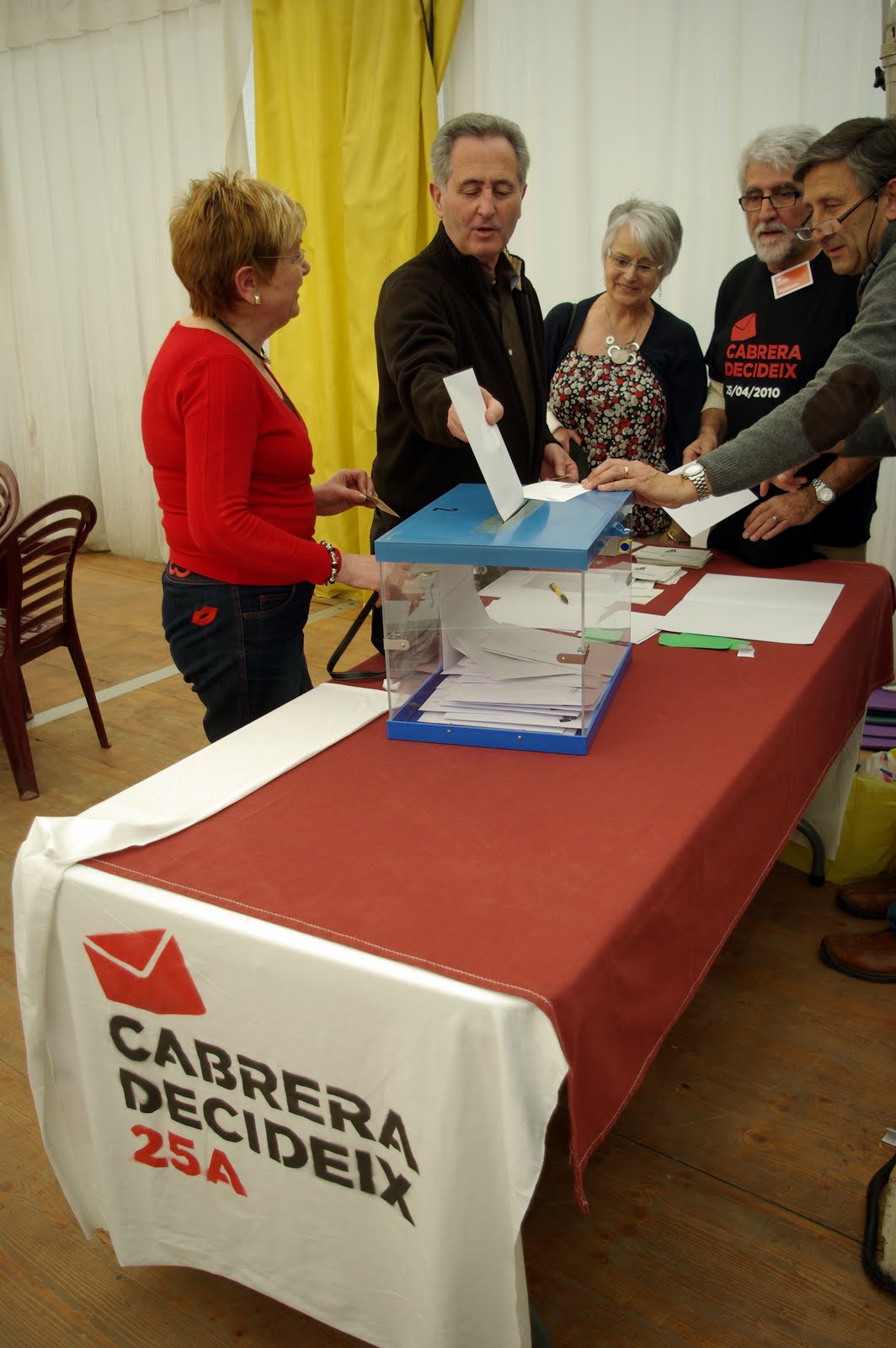 El dia 25 d’abril del 2010 serà una data històrica per a Catalunya. A 193 municipis, i gràcies a la iniciativa i el treball de milers de voluntaris, s’organitza un referèndum que permetrà expressar si volem que Catalunya sigui o no independent. 3.730 persones de Cabrera hi tenen dret a vot.